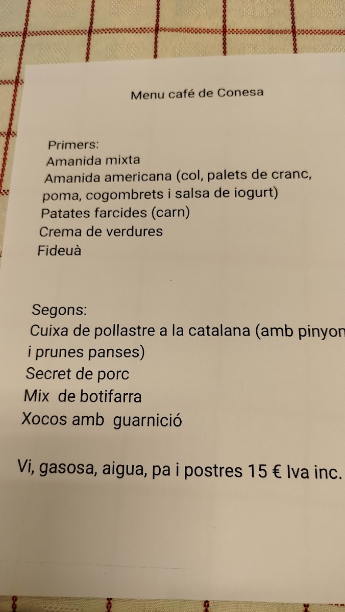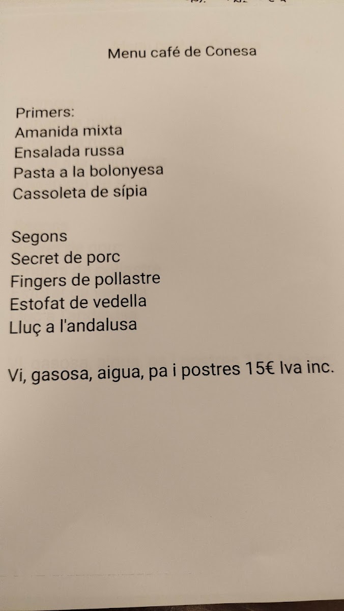 Customer favorites include the pasta carbonara, succulent grilled meats, and a must-try dessert: fresh cheese with honey and walnuts. The Thursday paella special is another highlight, celebrated by guests for its hearty portions and authentic flavor. Whether you're looking for a quick lunch or a leisurely dinner, the attentive staff ensures a memorable dining experience. Visit Cafè de Conesa to savor flavorful food that provides a genuine taste of local culture.